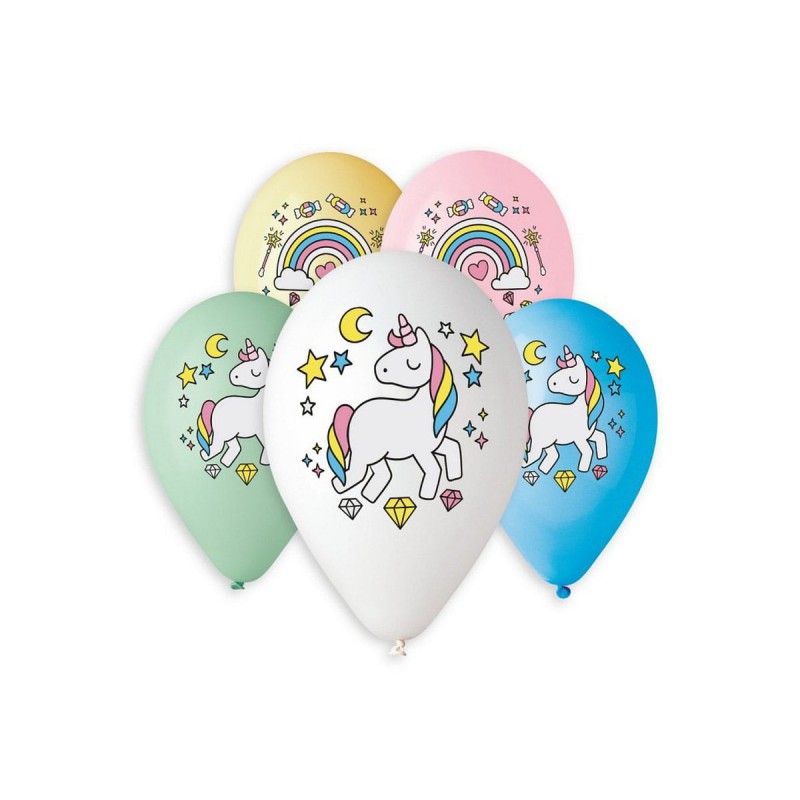 BALONY "JEDNOROŻEC i TĘCZA" - 33 cm-5 szt