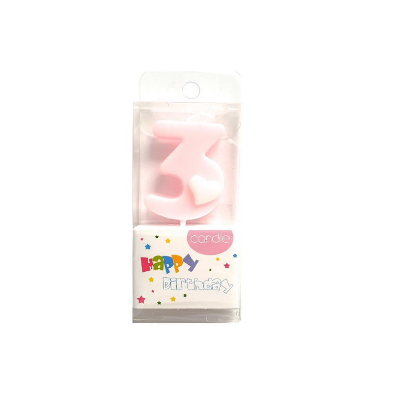 ŚWIECZKA CYFRA "3" - RÓŻOWA