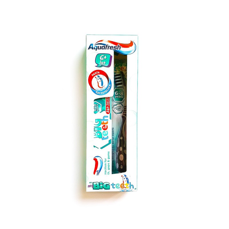 - Szczoteczka do zębów 6+ lat my Big Teeth – specjalnie opracowana przez lekarzy dentystów dla dzieci w wieku powyżej 6 lat. Główka szczoteczki z włóknami różnej długości pomaga dokładnie czyścić zarówno stałe, jak i mleczne zęby oraz dziąsła. Jej oryginalna rączka zachęca również dziecko do samodzielnego szczotkowania. Włókna różnej długości pomagają czyścić przestrzenie międzyzębowe. Przyjazna dla dziąseł elastyczna rączka szczoteczki zakończona przyssawką umożliwia wygodne postawienie szczoteczki.