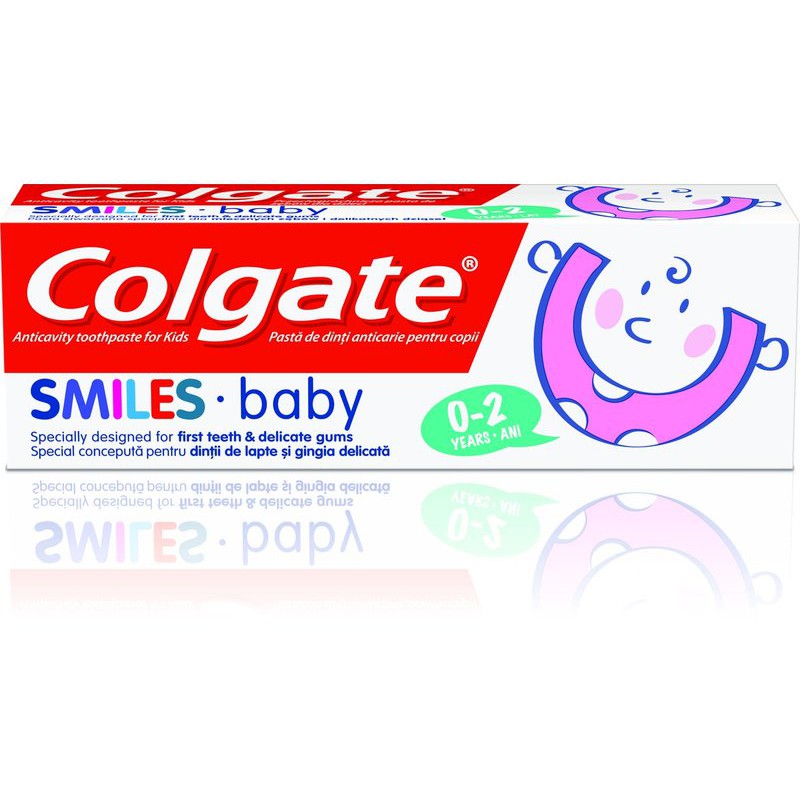 Colgate Smiles, Baby, pasta do zębów dla dzieci 0-2 lat, 50 ml Stworzona, aby szczotkowanie zębów było dla dzieci przyjemnością - tak, aby nabrały one zdrowych nawyków na całe życie.