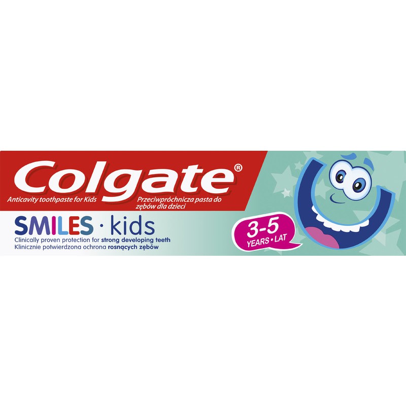 Zestaw zawiera 20 szt. past do mycia zębów "Colgate Smiles Kids" dla dzieci w wieku 3-5 lat.