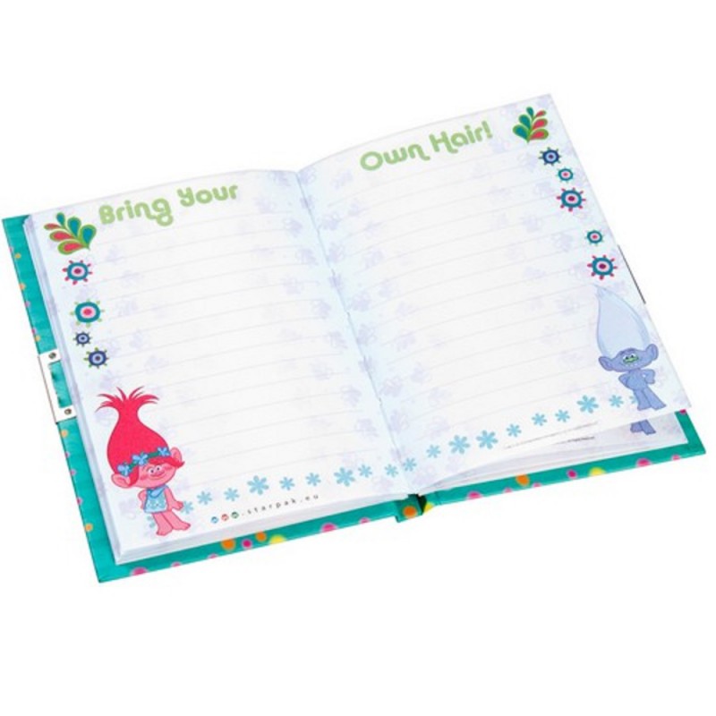 Pamiętnik zamykany na kłódkę aby lepiej chronić małe sekrety. Dodatkowo pamiętnik zamknięty w pudełeczku, dzięki czemu nie trafi w niepowołane ręce. Okładka przedstawia grafikę z bohaterami Trolls. Wymiary produktu(wys.x szer. x gł.) [cm] 20x15x3.
