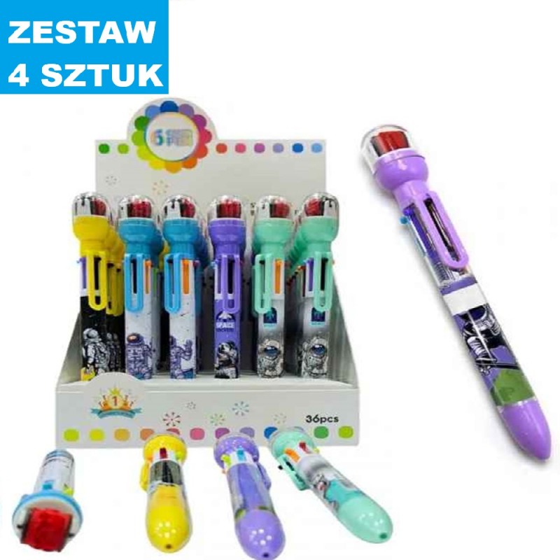 DŁUGOPISY WIELOKOLOROWE Z PIECZĄTKĄ "KOSMOS" - 4 szt.