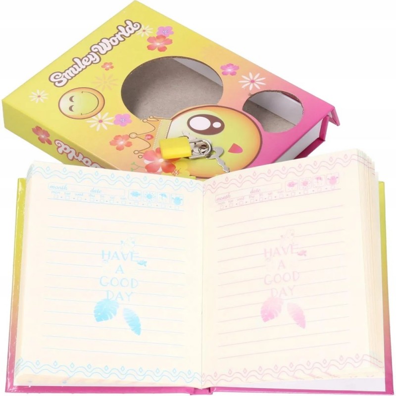 Kolorowy pamiętnik w twardej oprawie z motywem wesołych emotikonków i kłódką do zapisywania wszystkich swoich najskrytszych sekretów.