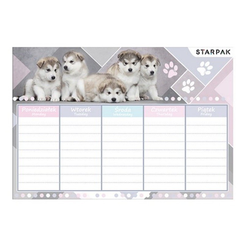 Grafika z pieskami Cuties sprawi, że każdy dzień w szkole będzie dobrze zaplanowany i udany.
