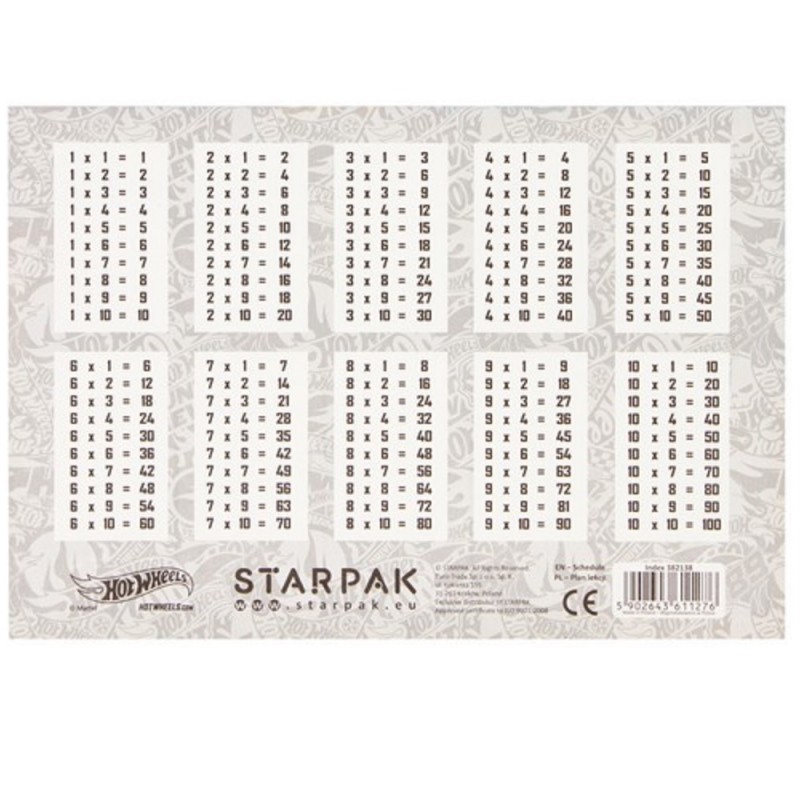 Plan Lekcji z Tabliczką Mnożenia A5 Hotwheels.