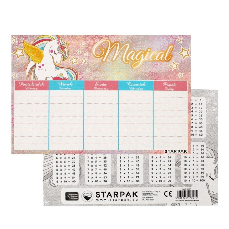 Plan Lekcji z Tabliczką Mnożenia A5 Jednorożcami.