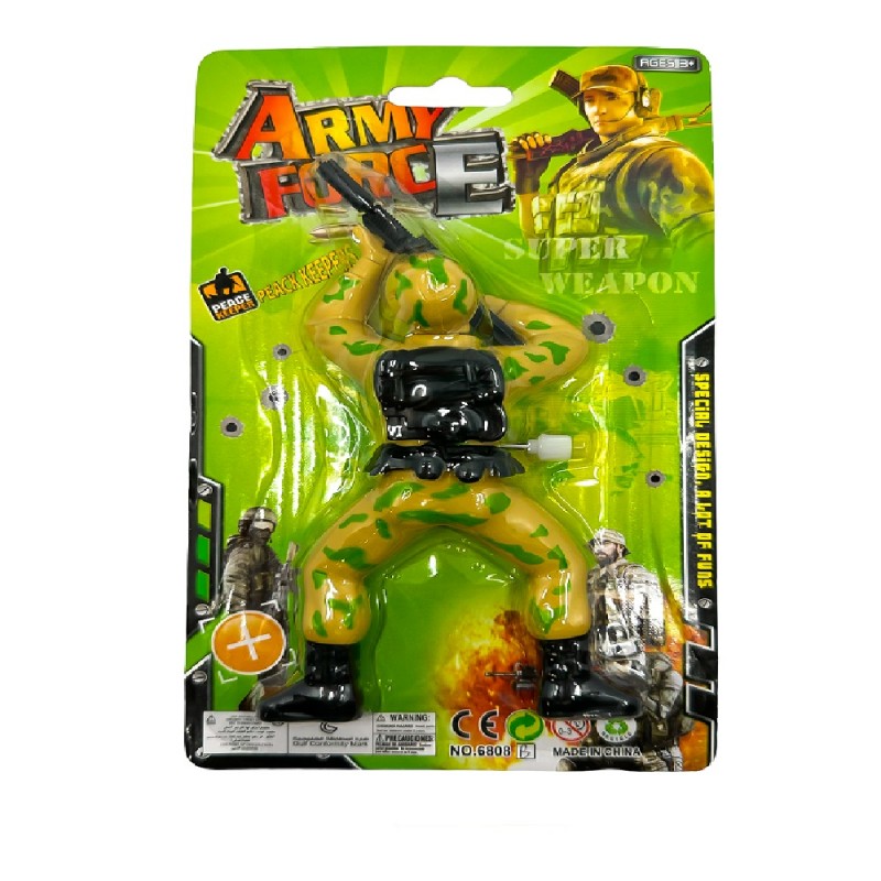 Kolorowa figurka komandosa z uzbrojeniem.