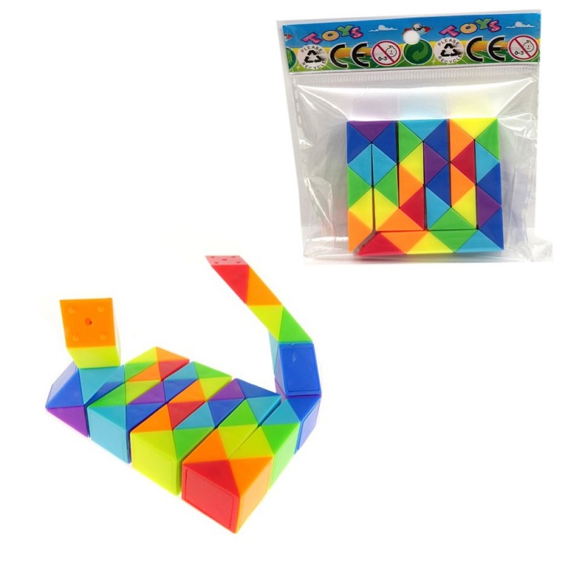 Układanka w kształcie kolorowego wężyka. Możemy rotować w różny sposób jego części. Dzięki temu zabawka przyjmie wybrane kształty (wężyk będzie miał różny przebieg). Mamy mnóstwo możliwości zmiany, ponieważ istnieje mnóstwo punktów rotacji. Największym wyzwaniem będzie ponowne ułożenie produktu do wyjściowego kształtu (co nie musi być wcale takie proste). Układanka nie jest jednak zaawansowana i dziecko na pewno sobie z nią poradzi. Obecność części o przeróżnych kolorach znacząco zwiększa zainteresowanie zabawką. Wymiary opakowania: 7,5x1x5cm.
