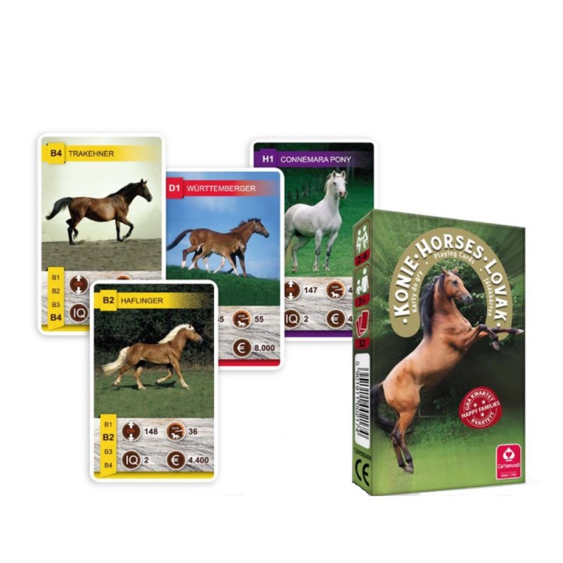 Gra karciana Kwartet z obrazkami koników.