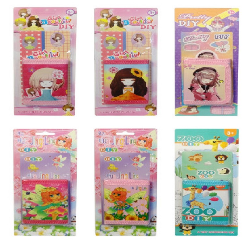 Zestaw portfel + ozdobne naklejki. Naklejkami dzieci będą mogły przyozdobić portfel lub inne prace rysunkowe.