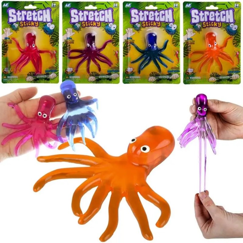 Kolorowa żelowa elastyczna ośmiornica, którą można rozciągać wygląda jak prawdziwe stworzenie morskie - sprawi wielką radość podczas wspaniałej zabawy. Ośmiornica mieści się w rączce dziecka, a dzięki niewielkim rozmiarom można ją schować do torebeczki lub plecaka, dzięki czemu może zawsze towarzyszyć w każdej podróży. Wykonana z miękkiej elastycznej masy żelowej, dzięki czemu jest ona miękka i miła w dotyku. Ośmiornicę łatwo utrzymać w czystości, wystarczy po zabrudzeniu umyć pod bieżącą wodą i cieszyć się zabawą od nowa.
