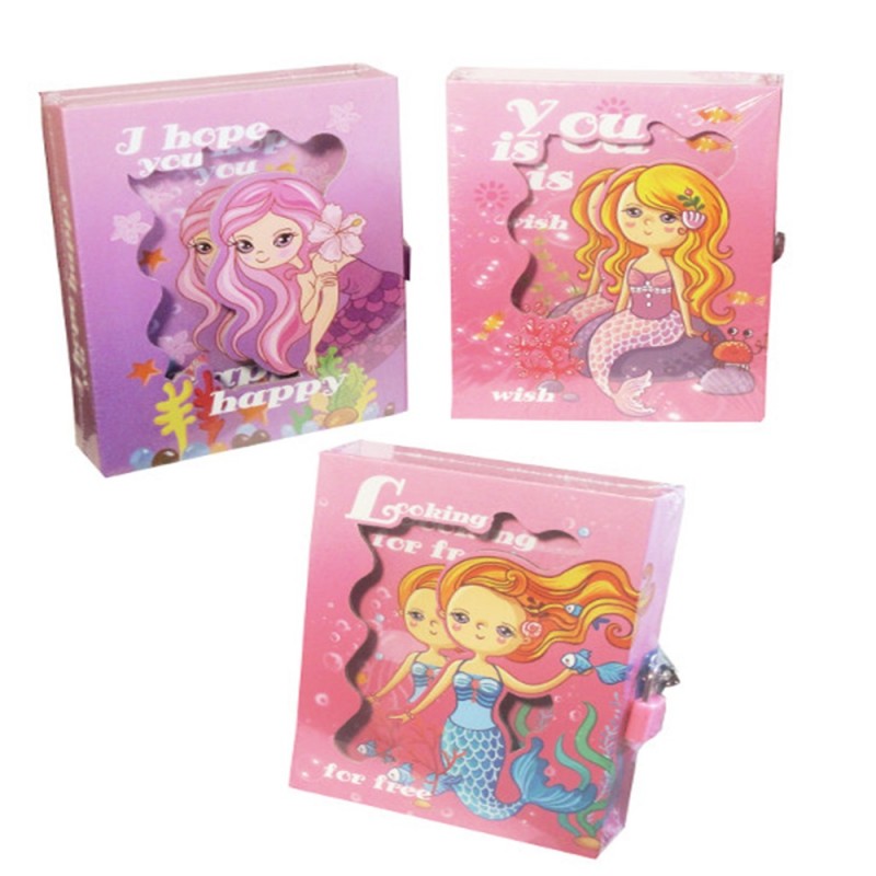 Kolorowy pamiętnik w twardej oprawie z motywem syrenki i kłódką do zapisywania wszystkich swoich najskrytszych sekretów. Produkt występuje w kilku wersjach kolorystycznych, wybierany losowo.