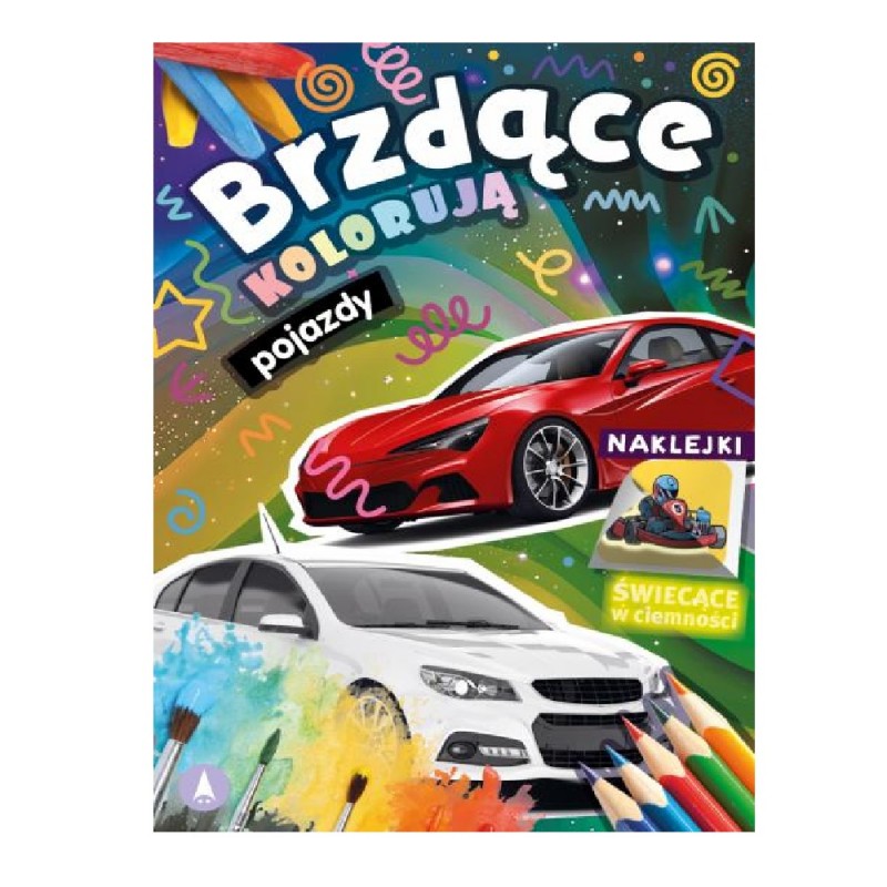 KOLOROWANKA Z NAKLEJKAMI "Brzdące kolorują pojazdy" (naklejki świecące w ciemności)