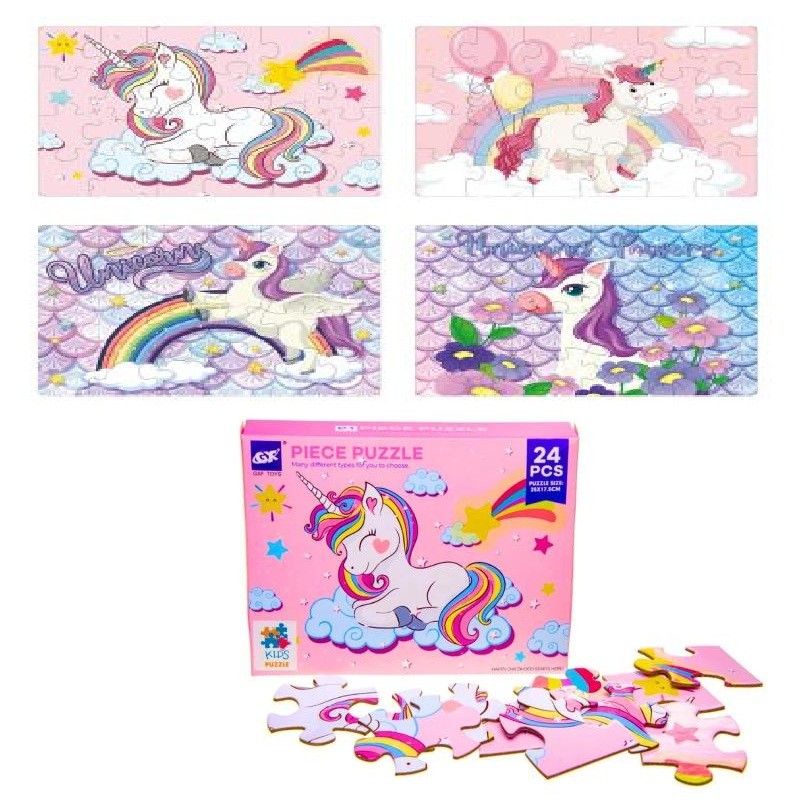 Zestaw zawiera puzzle z 24 elementami, co pozwala na dopasowanie poziomu trudności do wieku i umiejętności dziecka.
