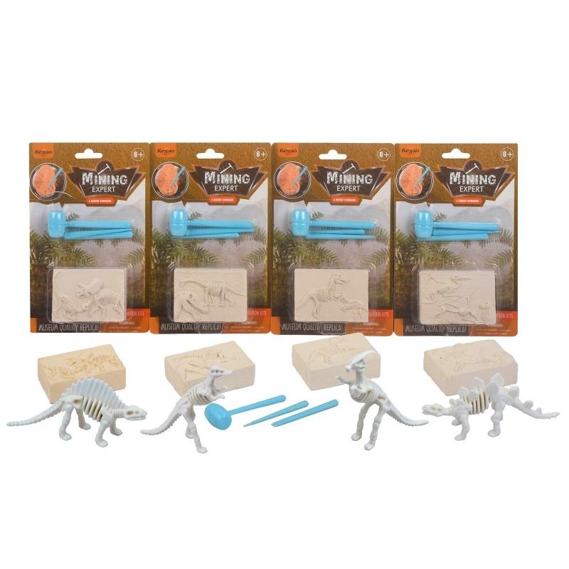 Dinozaur w skamielinie to zestaw dedykowany najmłodszym fanom okresu jurajskiego. Podczas zabawy dzieci zamienią się w prawdziwych paleontologów i spróbują odnaleźć szkielet dinozaura. W zestawie znajduje się malutka figurka dinozaura, dłutko oraz skamielina. Wystarczy tylko za pomocą dłutka wydobyć ze skały szkielet dinozaura, który odpowiada załączonej figurce.